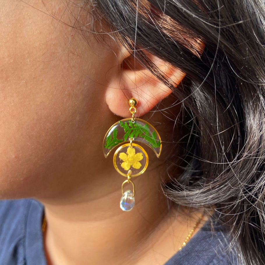 Delicately handcrafted with real apple blossom petals and soft fern leaves, Whispering Bloom Drops bring the poetry of springtime to your ears. Preserved in clear resin, these earrings capture nature's fleeting beauty and turn it into an everyday treasure. Lightweight, elegant, and full of botanical charm, perfect for nature lovers who adore dainty, feminine accents.